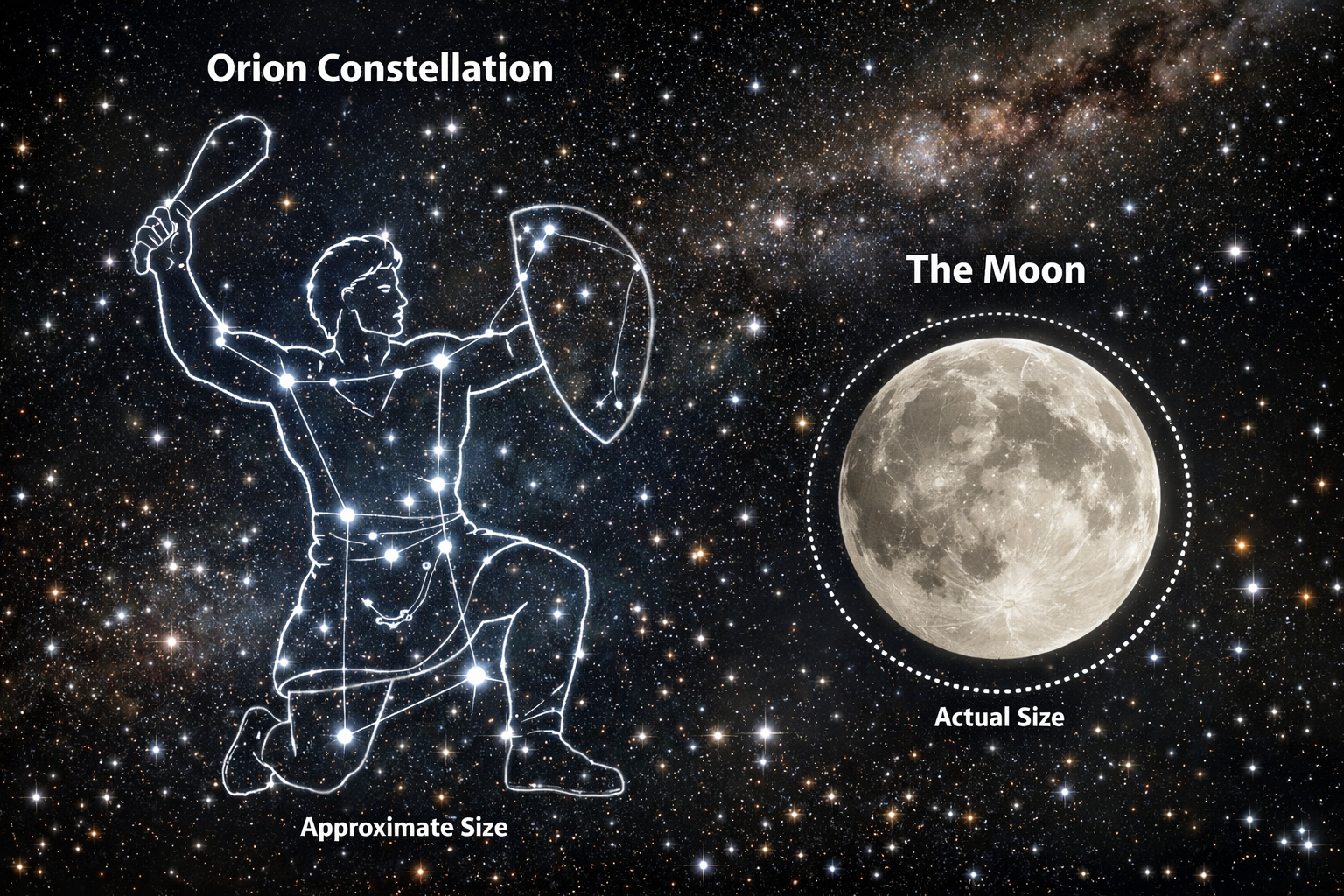 It is a fascinating and beautiful part of the sky, and massive in size. It is considerably larger than the moon and spans about 25º from top to bottom, represented in this image below.